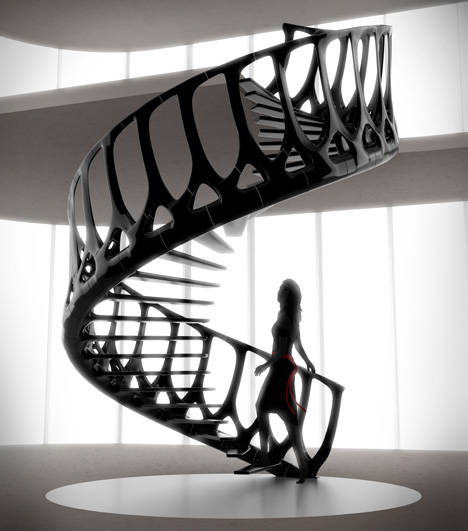 仿人體鋼骨架構(gòu)的樓梯,這樣的樓梯放在家里,想想也挺恐怖的。