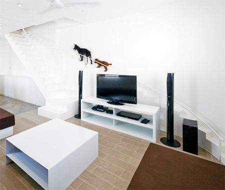 如果你家里也養(yǎng)寵物,或許這個(gè)設(shè)計(jì)能更吸引你。設(shè)計(jì)師07Beach為他的朋友量身打造了這款人寵雙用樓梯,更小的跨度和間距,更多的考慮了小型犬使用樓梯時(shí)的骨骼舒適性。當(dāng)然,前提是你得訓(xùn)練好你的狗狗走這條道,不然可就白費(fèi)心思了。